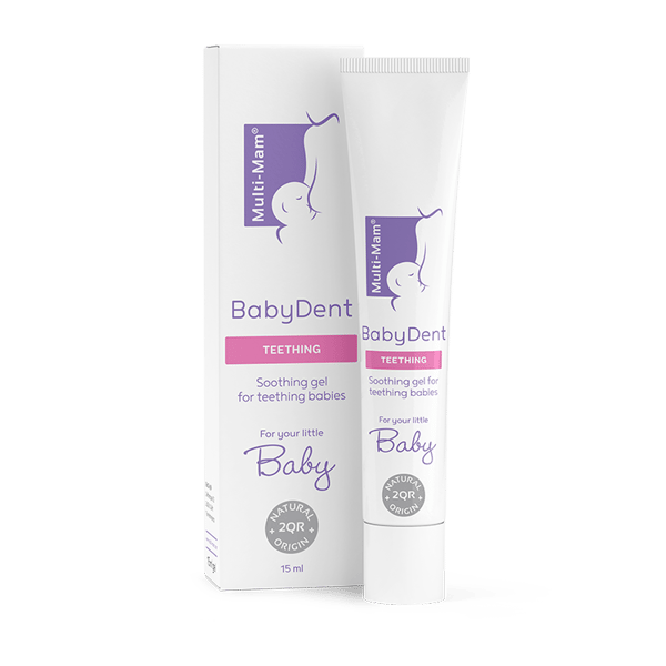Żel Multi-Mam BabyDent tworzy miękką, kojącą warstwę na obolałych dziąsłach, łagodząc podrażnienia spowodowane ząbkowaniem. Żel Multi-Mam BabyDent można przechowywać w lodówce, aby zapewnić dodatkowy efekt ukojenia, oraz nakładać go bezpośrednio na smoczek lub gryzak.
